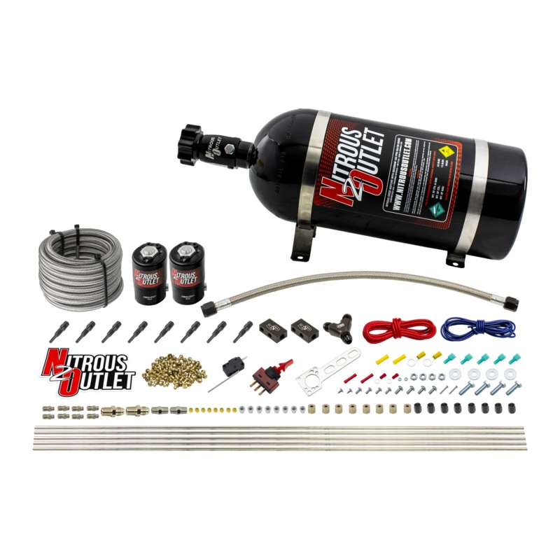 8 Cylinder Direct Port System With Single Injection Rail – .122 Nitrous/.310 Fuel – 90 Discharge Nozzles – 45-55 PSI E85