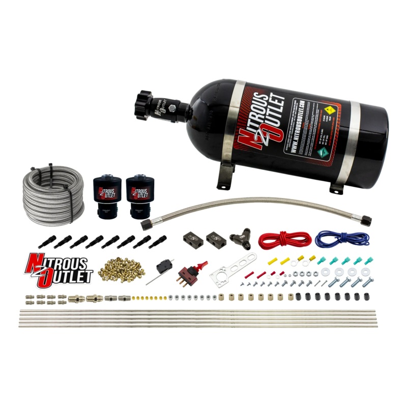 8 Cylinder 2 Solenoid Dry Direct Port System With Dual Rails – .122 Nitrous – 90 Discharge Nozzles