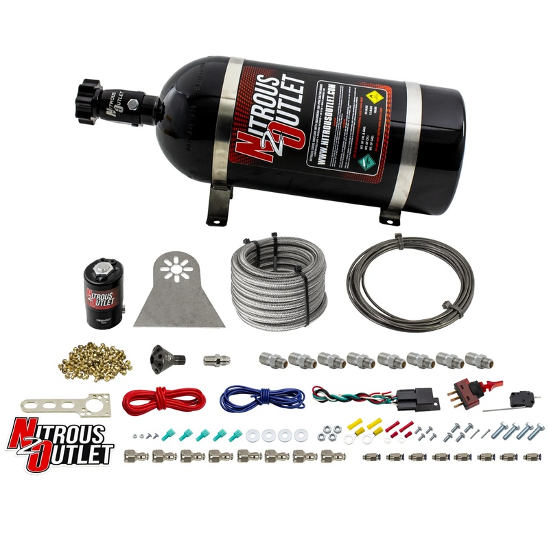 8 Cylinder Nylon Hose Direct Port Dry Nitrous System – Showerhead Distribution Blocks – .178 Nitrous – Plate Fittings
