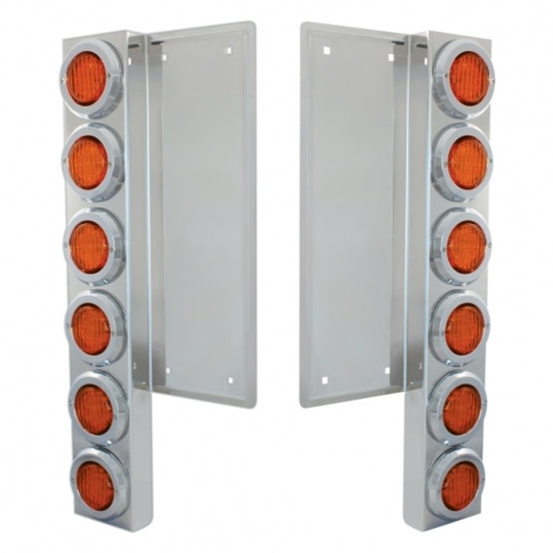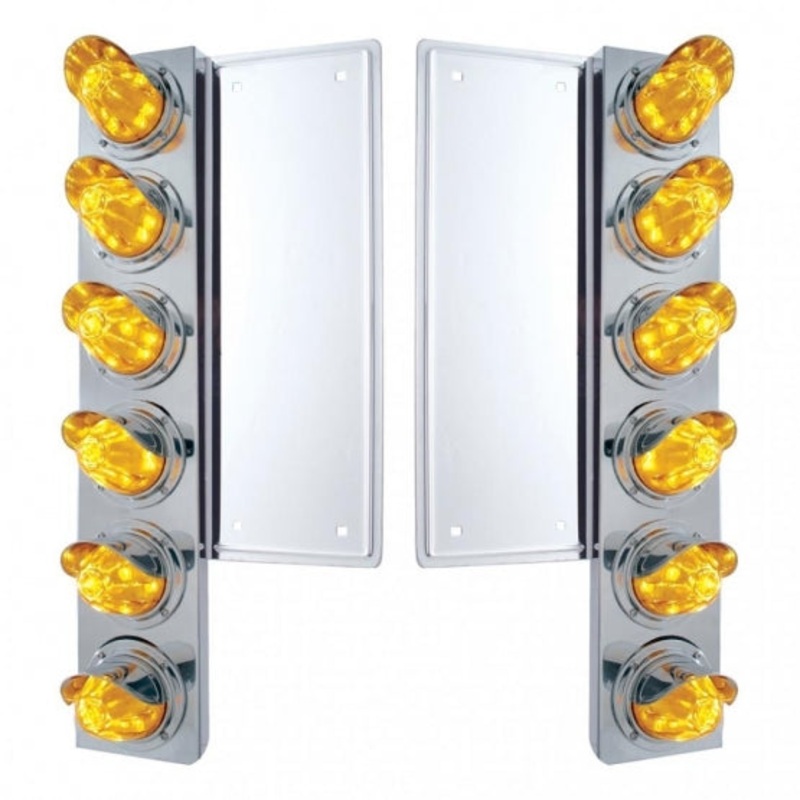 Freightliner Stainless Front Air Cleaner Bracket w/ Twelve 9 LED 2 Lights & Bezels – Amber LED/Amber Lens