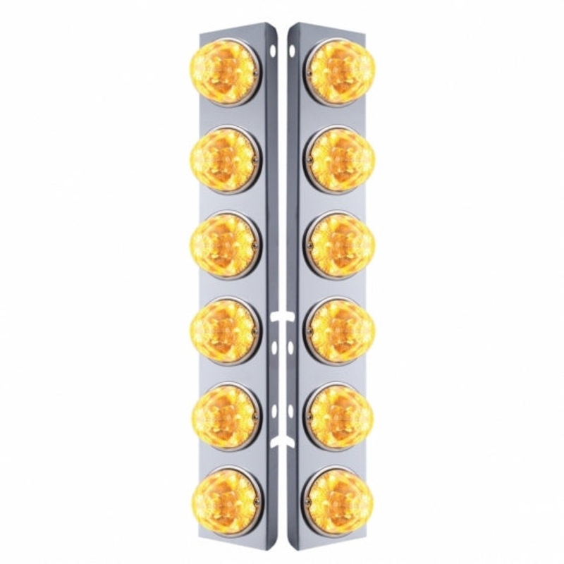Peterbilt Front Air Cleaner Bracket Kit w/ 12 Reflector Watermelon LED Lights & Bezel – Amber LED/Amber Lens