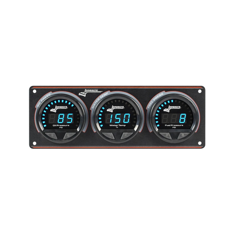 Digital Elite LED Waterproof Gauge Panel from Longacre, 3 Gauge Oil Pressure/Water Temperature/Fuel Pressure/Tach