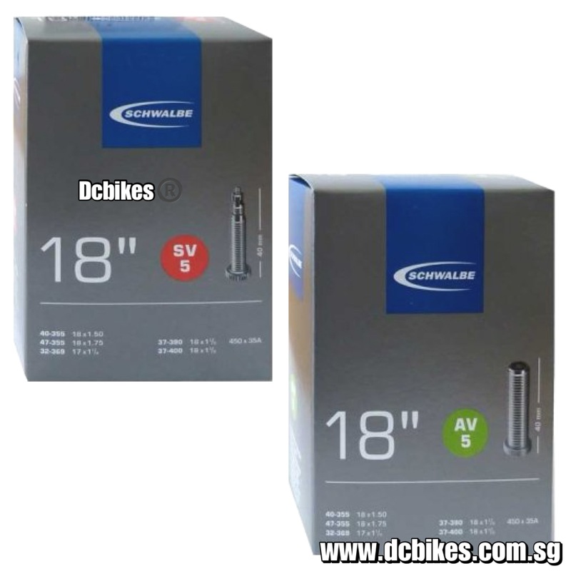 Schwalbe 18 X 1.125 – 1.75 Presta Schrader Inner Tube Etrto : 355 – SV5 AV5 (1 Piece)