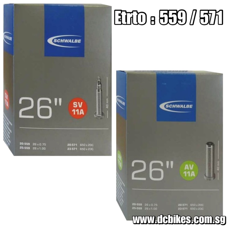 Schwalbe 26 X 0.75 – 1.0 Presta | Schrader Bicycle Inner Tube SV11A | AV11A – Etrto : 559 / 571 (1 Tube)