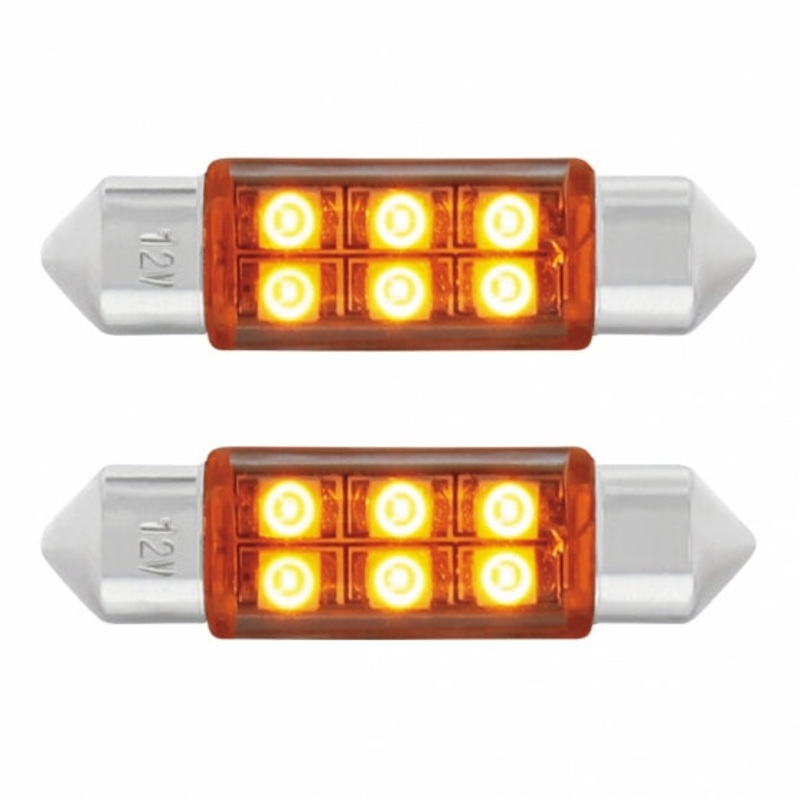 6-SMD High Power LED 6418 / 6461 36 mm Light Bulb – Amber (2 Pack)