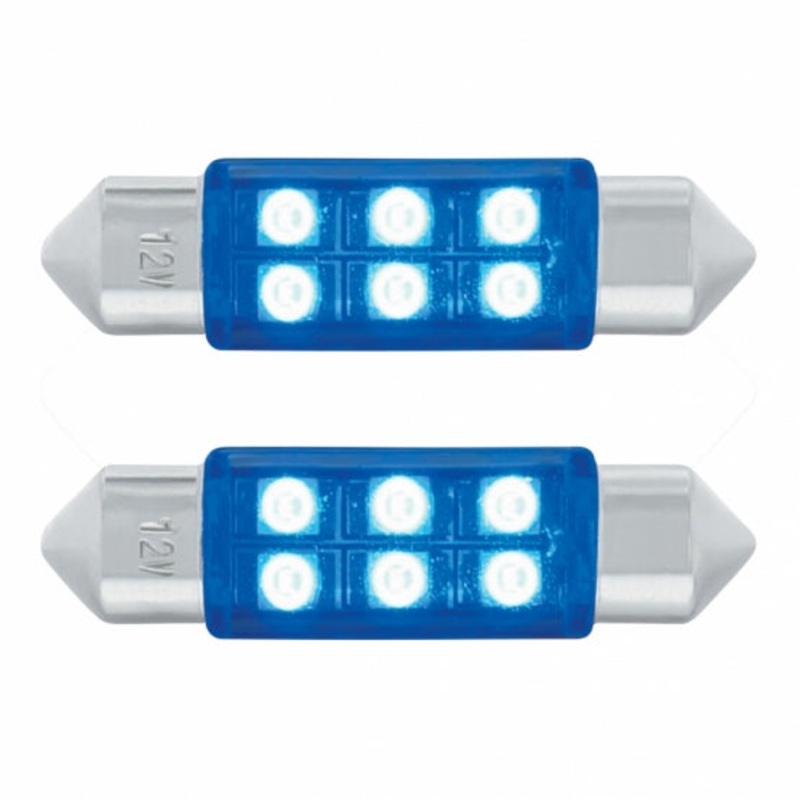 6-SMD High Power LED 6418 / 6461 36 mm Light Bulb – Blue (2 Pack)