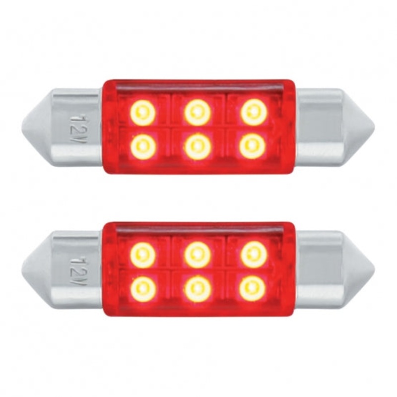 6-SMD High Power LED 6418 / 6461 36 mm Light Bulb – Red (2 Pack)