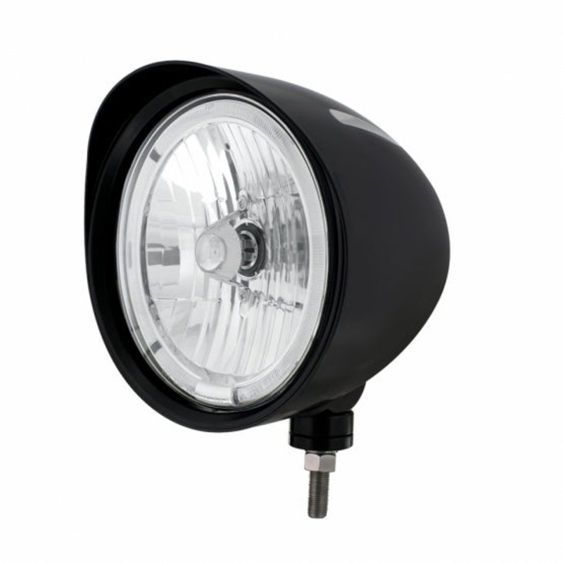 Black Billet Style Groove Headlight w/ Visor H6014 Bulb