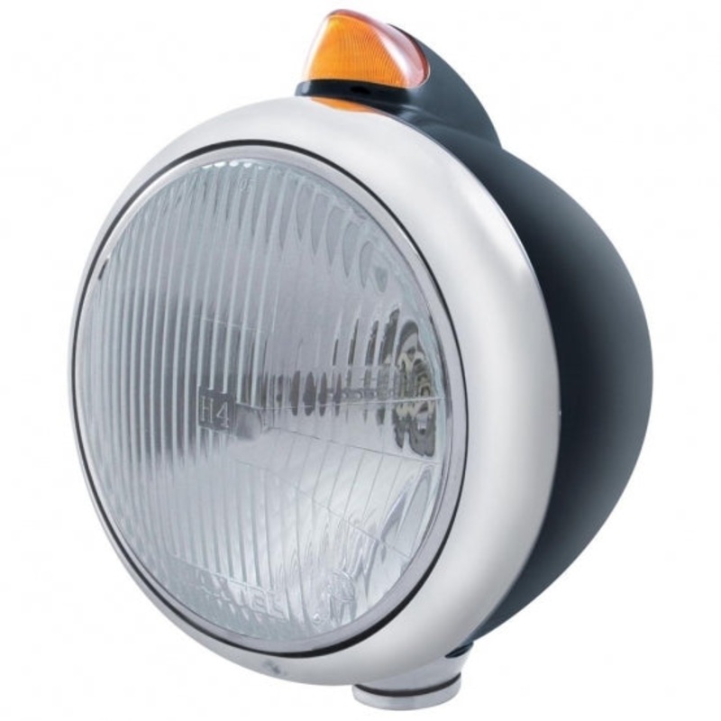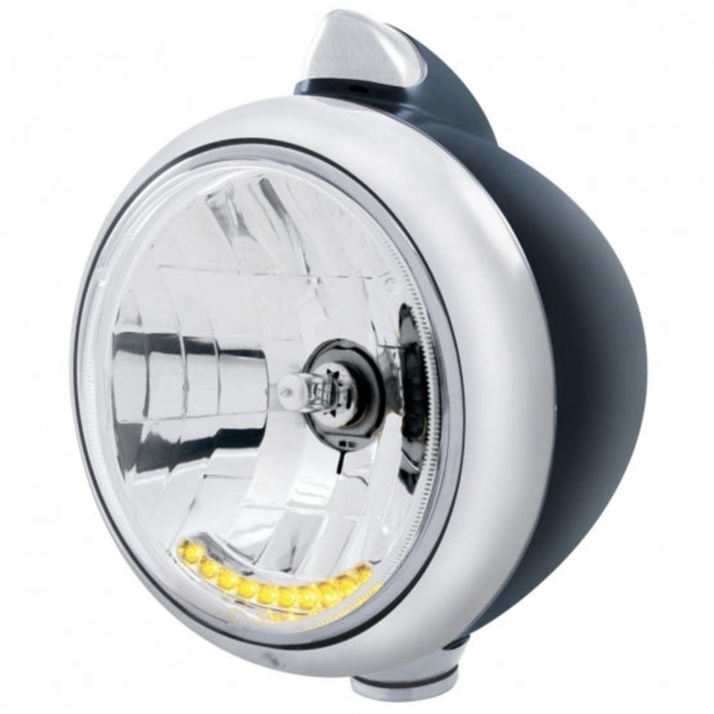 Black Guide 682-C Headlight H4 w/ White LED & Original Style LED Signal – Amber Lens