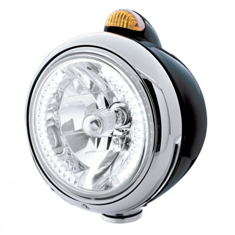 Black Guide 682-C Headlight H4 w/ White LED & Dual Mode LED Signal – Amber Lens
