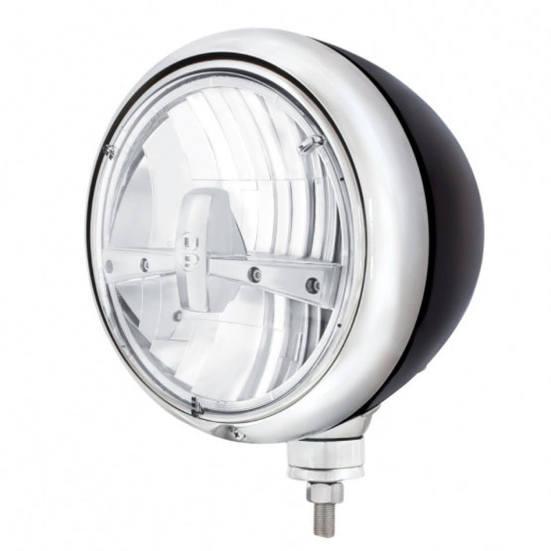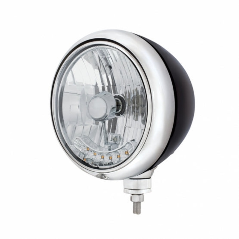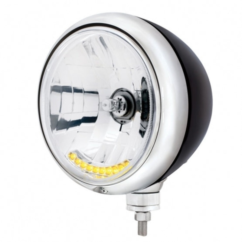 Black Guide 682-C Style Headlight 6014 & LED Turn Signal – Clear Lens