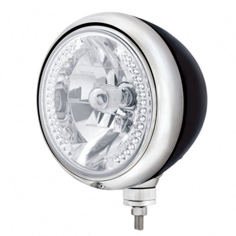 Black Guide Headlight 9007 Bulb w/ Amber LED Halo Rim