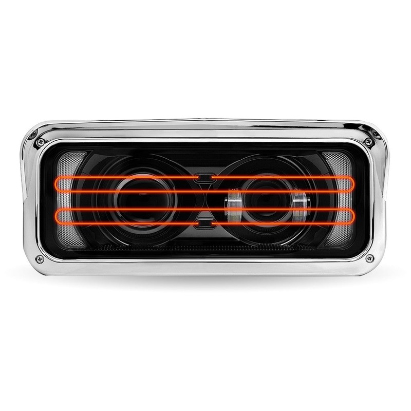 Black Heated Universal LED Projector Headlight Assembly with Optional Backlit Auxiliary