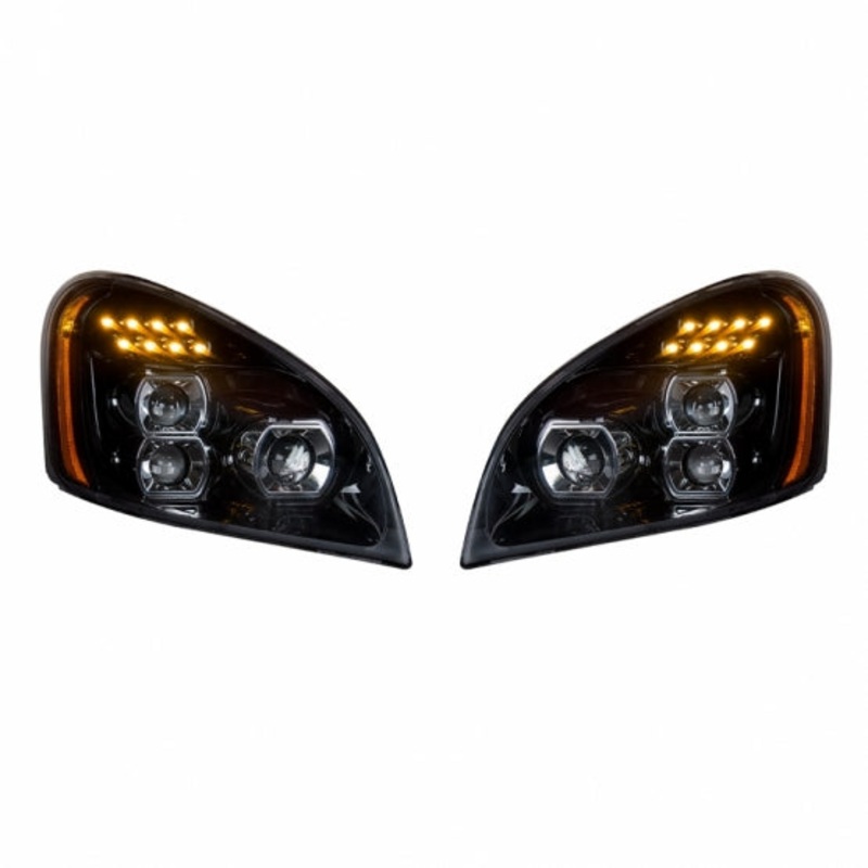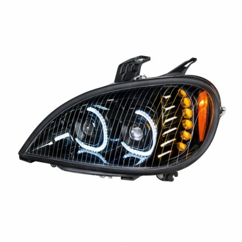 Blackout Freightliner Columbia Projection Headlight With Dual Function Amber LED Light Bar