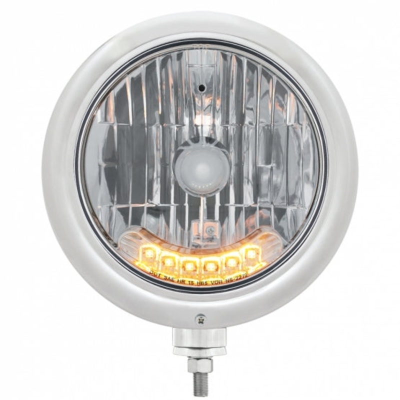 Chrome Classic Headlight H4 w/34 Amber LED & Dual Mode LED Signal – Clear Lens
