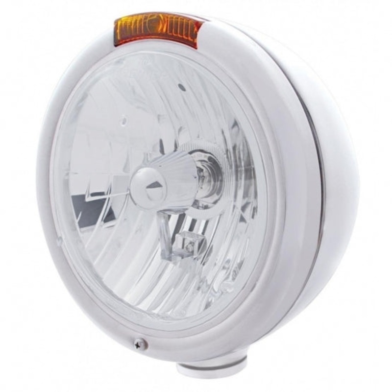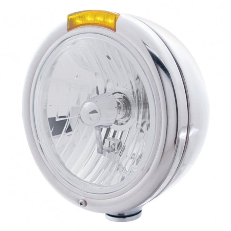 Chrome Classic Headlight H6024 Bulb & LED Turn Signal – Amber Lens