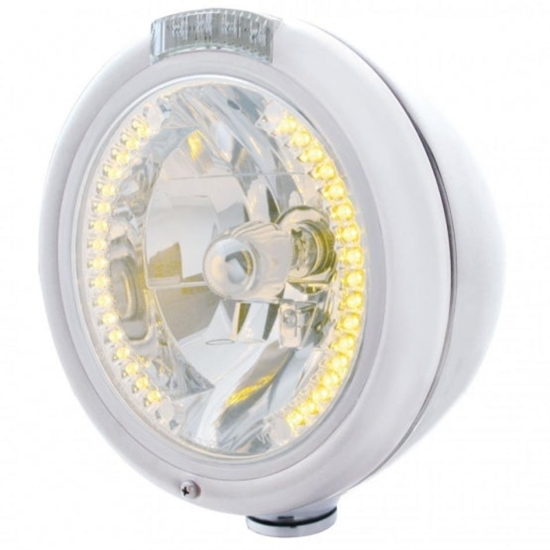 Chrome Classic Headlight H4 w/34 White LED & Dual Mode LED Signal – Amber Lens