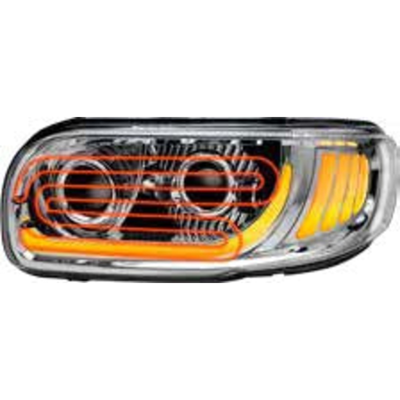 Chrome Peterbilt Heated LED Projector Headlight Assembly With Dual Function