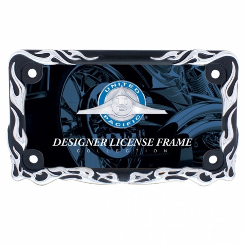 Chrome/Black Flame Motorcycle License Plate Frame