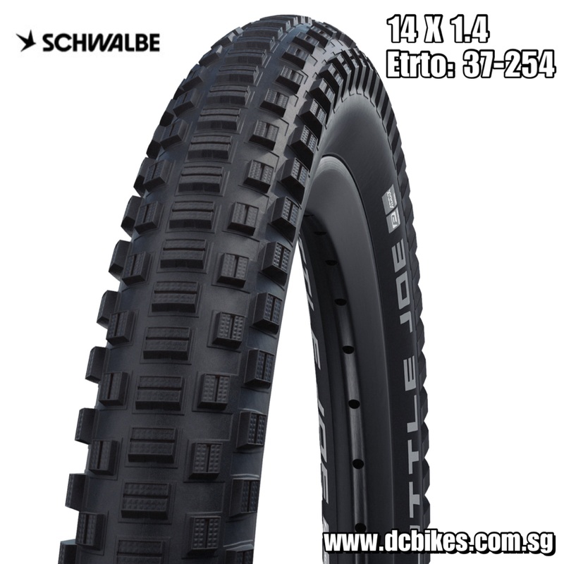 Schwalbe 14 X 1.4 Little Joe Wire Performance | Addix Black Reflex Wired Tyre – Etrto: 37-254 (1 Tyre)