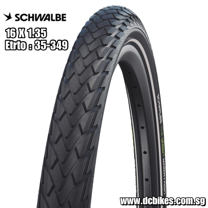 Schwalbe 16 X 1.35 Marathon Performance | Addix Eco | The Green Guard – E-25 – 16×1.35 | Black Reflex Wire Bead Tire – Etrto : 35-349 (1 Tyre)