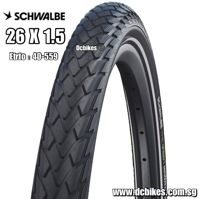 Schwalbe 26 X 1.5 Marathon Performance | Addix Eco | The Green Guard – Ebike Bicycle Black Reflective Wired Bead Tyre (1 Tire)
