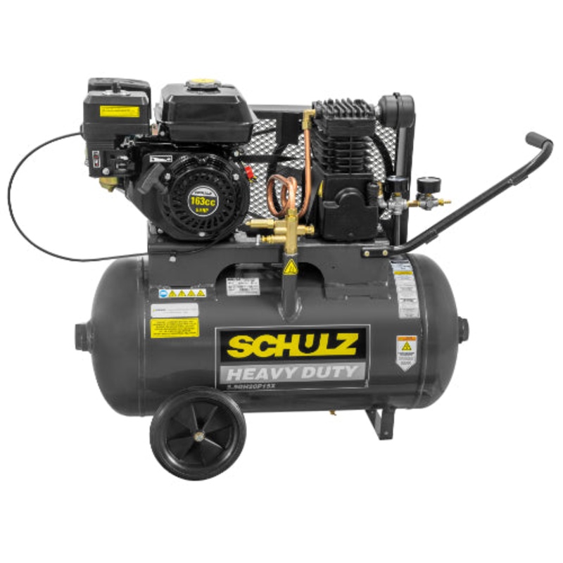 Gas engine driven reciprocating air compressors are ideal for contractors, service trucks, and projects without access to electrical power. The Schulz 13 horsepower reciprocating air compressor is powered by a 390cc 4-stroke gas engine, delivering up to 175 PSI and mounted on a 30 gallon tank which can be mounted on trucks or trailers. The cast iron pump constructiondelivers a high cfm per horsepower ratio and can withstand the most rugged demands, conveniently bringing air right to the jobsite.