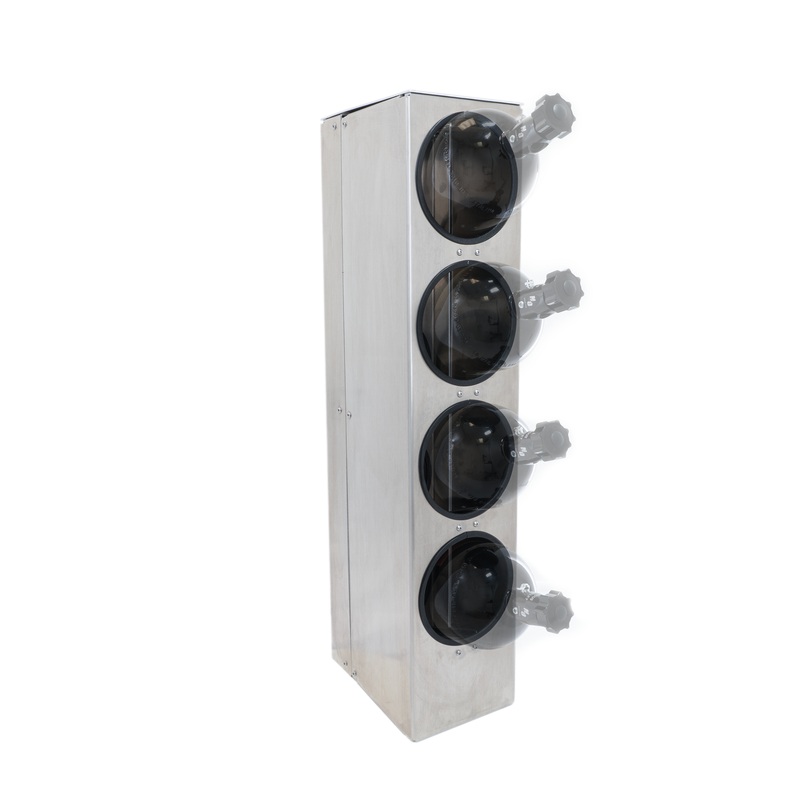 Accessory Control. This panel has 2 LED rocker switches for system arm and heater activation, 1 rocker switch for a remote bottle opener, and a red push button switch to control purge.