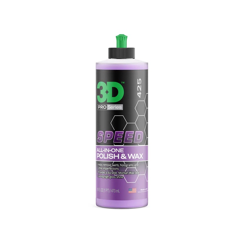 3D Speed contains a cut, polish and wax designed to remove light to moderate scratches and swirl marks; whilst leaving behind a long-lasting wax