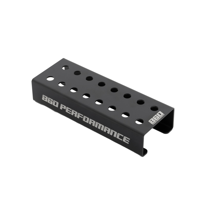 The 860 Performance Spark Plug Holder is designed to securely accommodate up to 16 spark plugs, offering both functionality and durability. Crafted from rugged .063″ aluminum, it features a matte black textured powder coat for a sleek, professional look. This holder is compatible with spark plugs ranging from .42 to .475 in diameter, ensuring a perfect fit for various spark plug sizes.