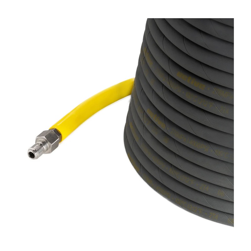 The Active 50 Extension Pressure Hose is rated for a maximum of 4000 PSI operating pressure and 45 LPM (12GPM) of flow at a peak operating temperature of 60C (140F) enabling a broad operating range for any residential or commercial electric and gas-powered pressure washer.