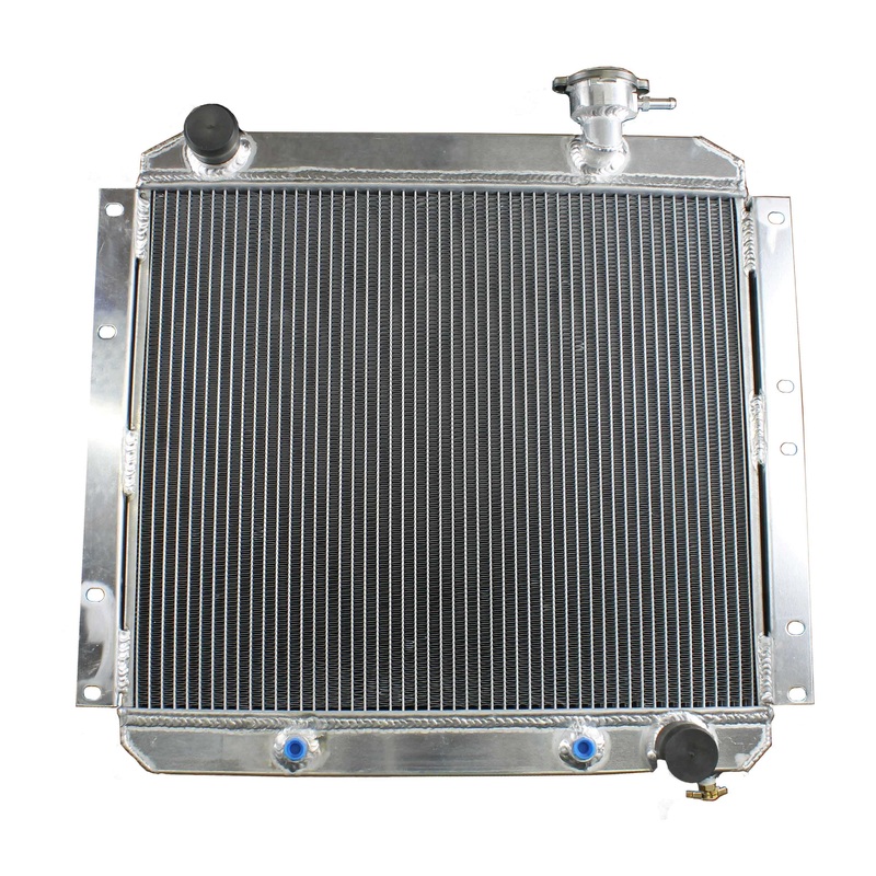 Don’t let your old, leaking, beat up radiator leave you stranded. It’s time to upgrade to our brand new Aluminum Radiators designed to use your factory mounts and hoses. These are a direct bolt-in replacement. Perfect for any F, 2F engine or V8 Conversion. All aluminum tanks, cores, brackets and welds, absolutely no epoxy; Higher density core: cooling rows are spaced 3/8″ apart: giving you 25% more rows than any others in our price range and 35% more rows than OEM copper; Aluminum dissipates heat more efficiently than copper or brass; 14-16 cooling fins per inch giving you approximately 1,500 more cooling fins than other aluminum radiators and approximately 3,000 more than OEM copper radiators. Lighter weight Outperforms other 2 row aluminum as well as 3 and 4 row copper radiators and has a great High performance appearance. Core: 17 1/8 Tall x 19 Wide Overall Dimensions 22″ High x 22-1/8″ Wide Inlet 1 Divers side / Outlet 1 passenger side Tank is 2 Thick Transmission Cooler Ports Included / 1/2″ 20 Straight Thread G 1/4 (don’t use NPT). Radiator Cap Included