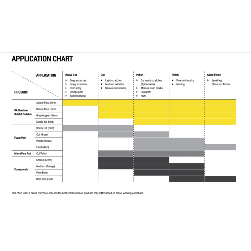 The yellow polishing pad has a medium density foam suited for slight to medium paint correction. It is used after cutting to remove swirl marks created from cutting.