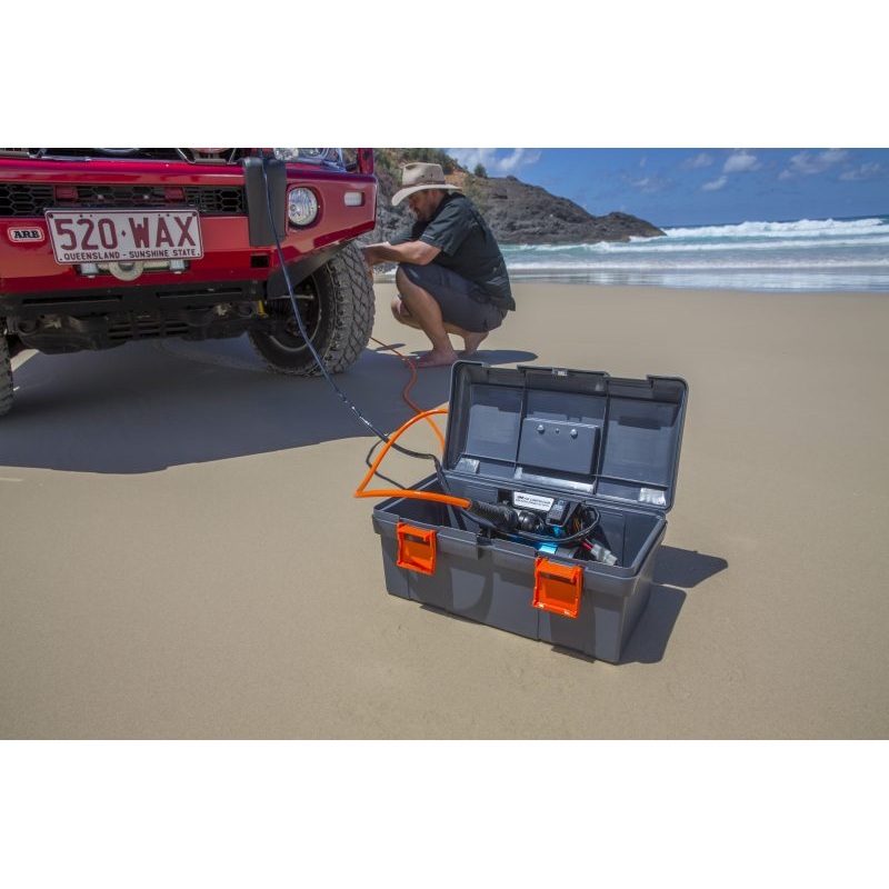 The most popular in our range, the ARB High Output Air Compressor has been constructed entirely of lightweight, high-grade materials and is available in both portable and vehicle mounted configurations. With a class-leading flow rate, this compressor has been designed for Air Locker activation (on-board model), fast tire inflation, and a range of other functions whether they be for work or play. The vehicle mounted kit comes with a full wiring loom and mounting hardware for easy installation, while the portable kit includes a 19ft air hose, battery clamps, inflation kit, and a durable carry case.