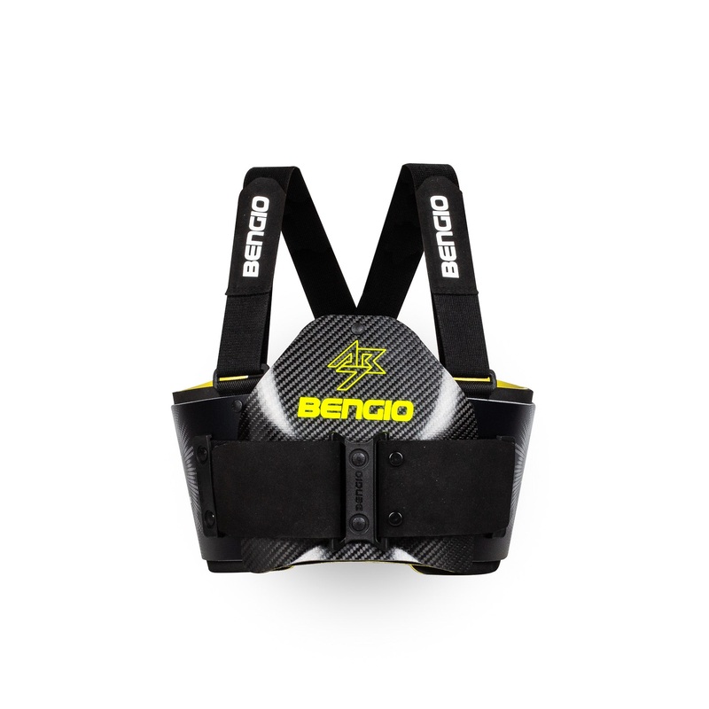 Thanks to the new closure system designed and registered byBENGIO, the driver can wear and adjust the rib protector in a simple, fast and safe way being sure that the protective areas stay in place during the driving session in compliance withFIAsafety standard.
