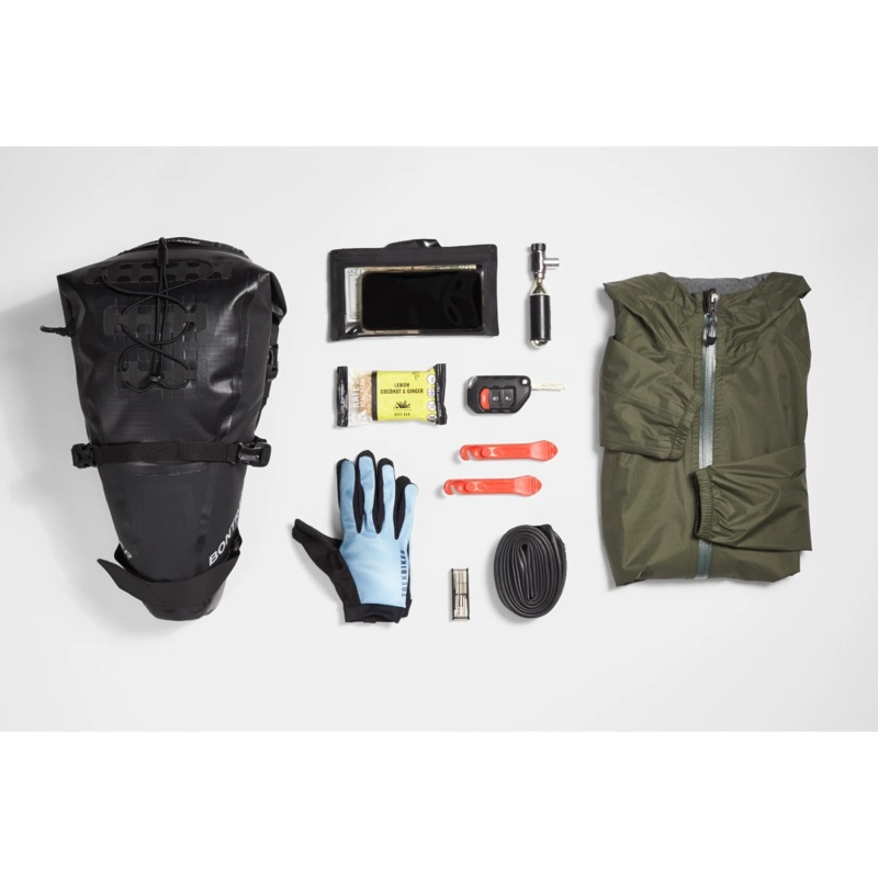 Carry your ride essentials safely through rough and rugged terrain with the Adventure Seatpost Bag. Two buckles around the saddle rails and a hook and loop closure make this bag easy to mount and extra-secure. Zipped side entry offers easy access to this bag’s 9 L of capacity, and an additional bungee cord and strap up top makes it easy to stow a rain jacket, extra layer and more quickly.