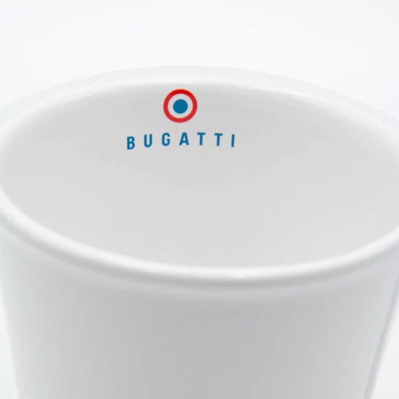 This ceramic mug features a front view of the Bugatti Bolide track car and the “Bolide” logo on the outside, with the Bugatti logo and Cockade of France on the inner side.
