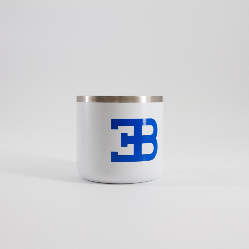 This lightweight and durable white Bugatti mug features the “EB” logo in the striking Bugatti blue.