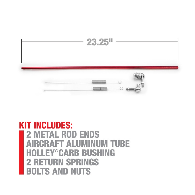 - Comprehensive Components: Our linkage kit includes 2 all-metal rod ends, aircraft aluminum tube, Holley carb bushing, 2 return springs, bolts, and nuts, providing everything needed for a complete installation.