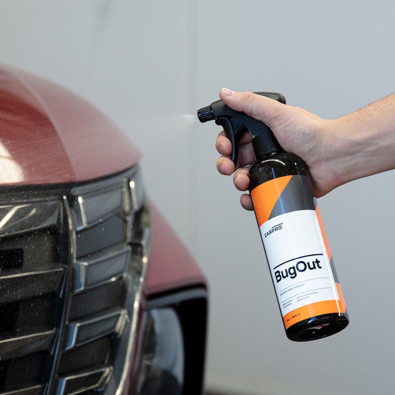 CARPROBug Out is a new formulation that specifically targets bugs, lifting even the toughest and most stubborn deposits. When bugs start to accumulate on an automotive surface, their proteins and other chemicals inside their body start to bind to the paintwork, and can even etch into the clearcoat. Some of these bugs even have shells or other components that can scratch the paintwork if left untreated.