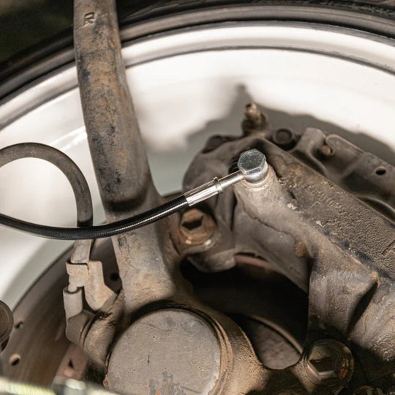 The Chase Bays Fenderwell / Caliper Brake Lines for SXE10 chassis are for the enthusiast who wants to improve braking response, improve pedal feel, and upgrade to a more durable setup. They’re a ONE PIECE design from the clip in the wheel well directly to the caliper. The OE rubber hard lines are upgraded and replaced with 3AN stainless steel braided, Teflon PTFE lined, black PVC coated lines with stainless steel hose ends.
