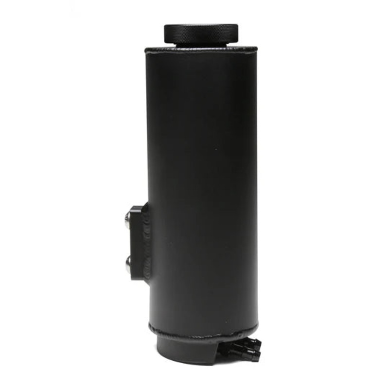 The Chase Bays Aluminum Coolant Overflow Reservoir holds a unique set of innovative features. A common side effect of spirited driving is most coolant overflows quickly fill up and spew coolant out of the cap under heavy use, leaving you with an engine bay to clean. The reason this happens is the rapid spike in coolant temperature pushes through the radiator cap. To solve this problem, Chase Bays has created a way to directly control this chaos. The bottom of the overflow has hose barb inlet and outlet fittings. Inside the overflow the outlet tube extends up 1″ from the fill cap.
