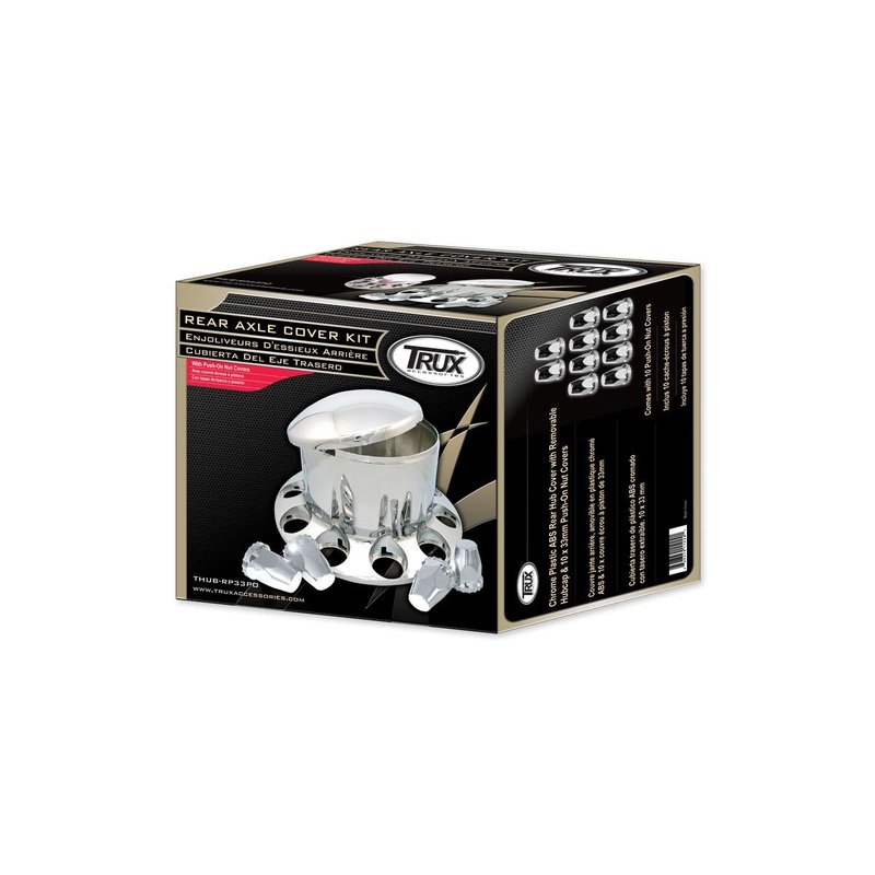 - 1 x Chrome ABS Plastic Rear Axle Cover w/ Removable Center Cap | 10 x 33mm Push On Nut Covers