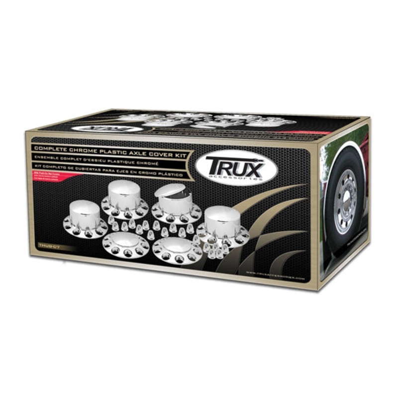 THUB-C7Chrome Plastic ABS Front & Rear Hub Cover Kit with Removeable Hubcap & Push-On Nut Covers (2 Front, 4 Rear)