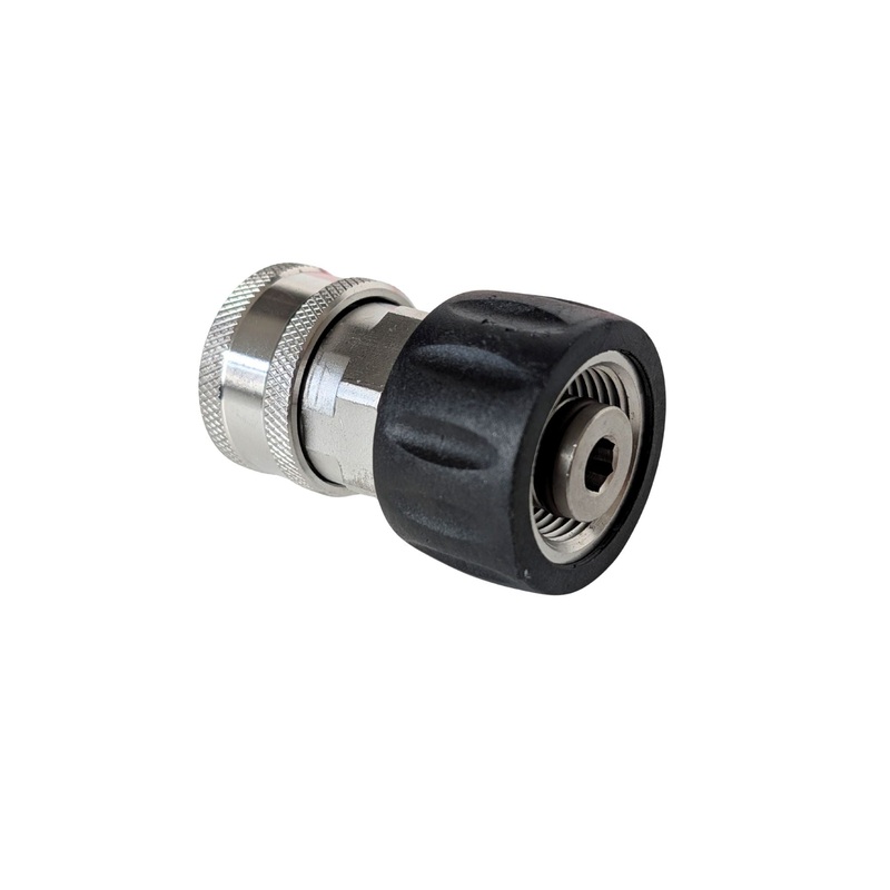 The CleanSkin M22 (F) to 3/8″ (F) Quick Connect Coupler (CS035) enables seamless conversion from an M22 (M) pressure washer outlet to a 3/8″ quick connect system.This coupler allows you to easily attach hoses with a 3/8″ QC (M) plug, enhancing compatibility and simplifying your pressure washing setup for efficient operation.