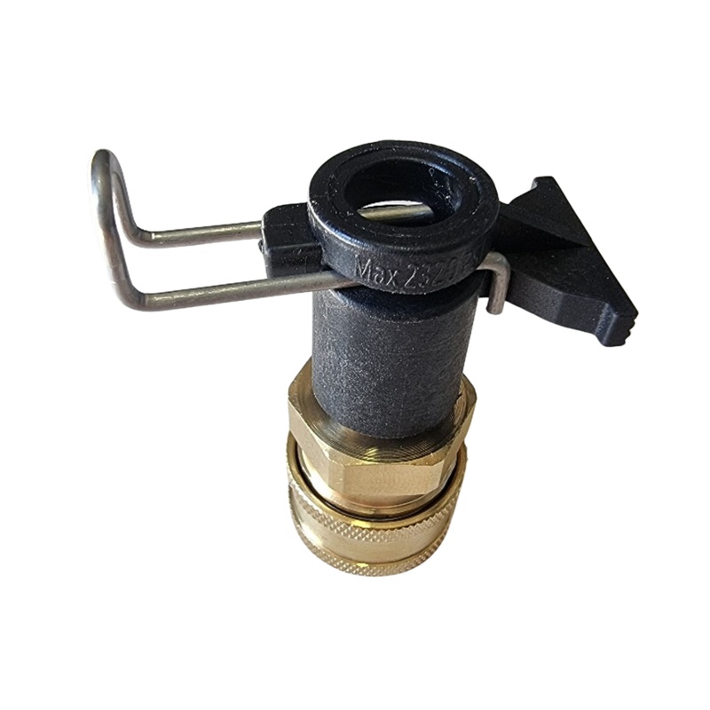 This fitting allows you to adapt your Gerni, Stihl, Bosch, Bigboi, Ryobi, Ozito, or Karcher pressure washer water hose outlet to a 3/8″ (Female) quick connect assembly, commonly used with short guns that have a 3/8″ (Male) quick connect plug.