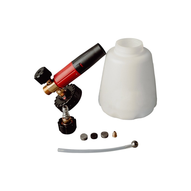 Increased foam density, weighted suction hose, larger receiving spout, wider base to prevent knocking over and 360 degree spray angles are but a few of the improvements the Snow Foam Lance Plus has over our already popular snow foam lance.