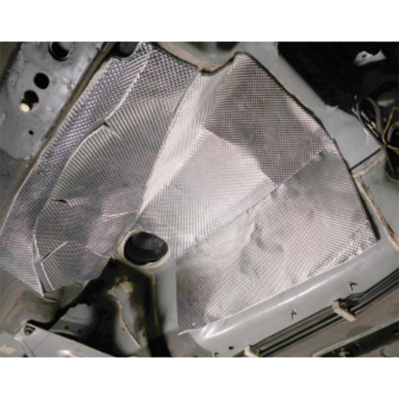 The kit consists of a high-heat resistant material (Floor and Tunnel) only 3/16″ thick for minimal clearance and rated to handle 1750F of direct heat. The material is CNC cut into five individual pieces that are applied to and fit together above the transmission to reflect heat from entering through the floor. Each piece is backed with an aggressive adhesive for a simple peel, position, and stick application. Also included are two packets of adhesion promoter, one roll of 1-1/2″ w x 15ft heat reflective sealing tape to cover seams, and detailed installation instructions.