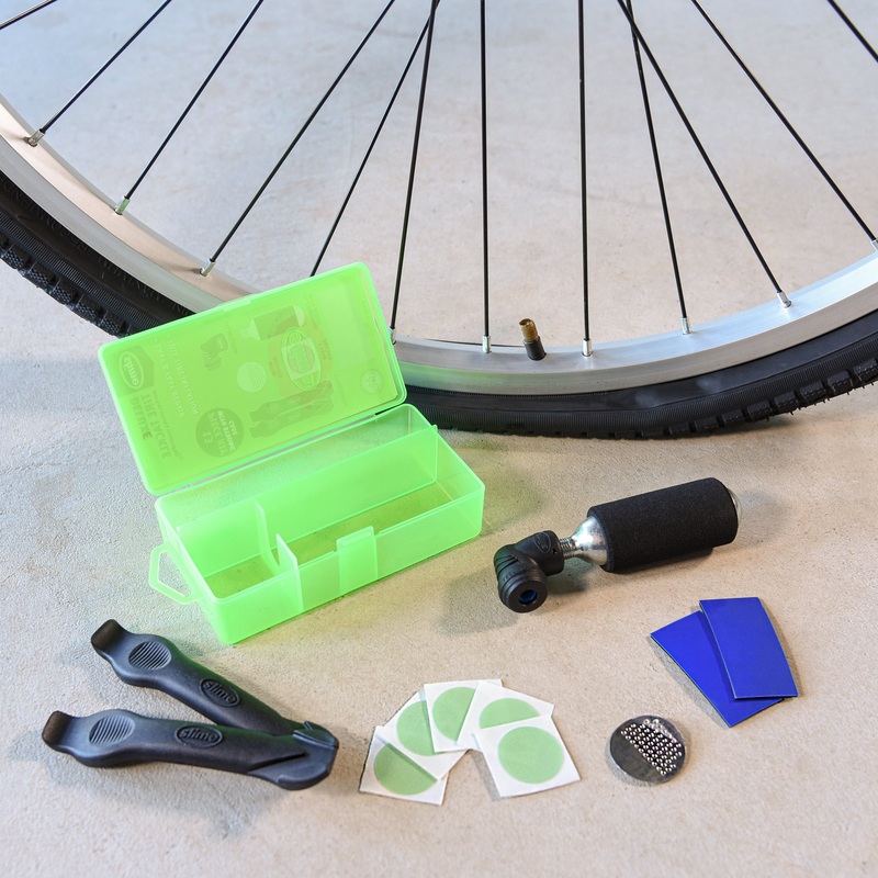 - Repair your tube puncture with the extra-strong tire levers and pre-glued tube repair patches