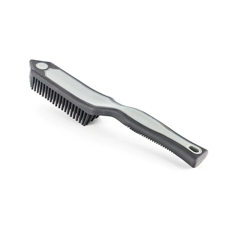 Part of our line of pet hair removal products. There are a number of similar brushes on the market, but every one of them is a flimsy piece of metal with rubber overmolding. We decided we could do better. We took our comfortable ProGrip handle and gave it a dense set of rubber bristles.